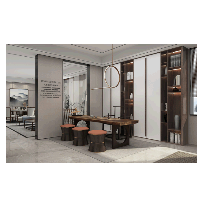 Elevate every gathering with this stunning **dining room**, a true masterpiece of modern design. The bespoke built-in cabinet is a study in flawless artistry, seamlessly blending sleek white panels with a sophisticated gray centrepiece. A beautiful marble accent and an exquisite central display create a gallery-like focal point, while ample storage provides both elegance and perfect utility. This is more than a dining room—it’s a sanctuary of style designed for unforgettable moments.