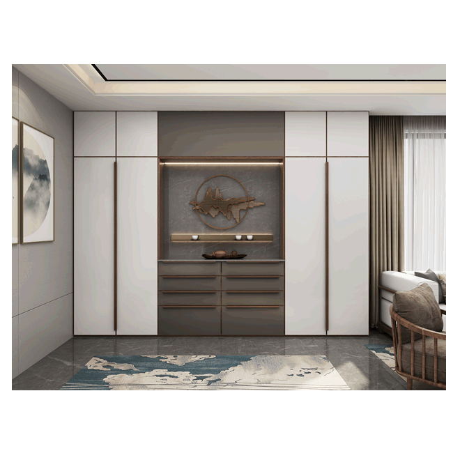 Make an unforgettable first impression with this exquisite **entrance** cabinet, a true work of functional art. This bespoke unit seamlessly blends sophisticated gray and white storage with an artistic, recessed display. The stunning tropical-inspired backdrop and integrated bench create a welcoming spot, while ample hidden storage ensures a perfectly organized entryway. This is more than just a cabinet; it’s a statement of style designed to greet you with beauty and perfect utility.
