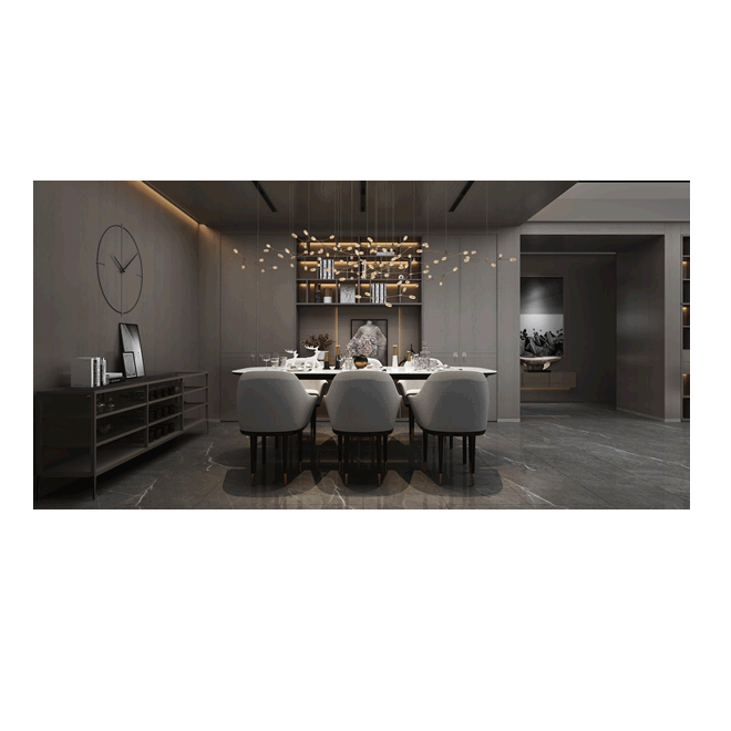 Enter a world of refined elegance in this exquisite **dining room**, where a seamless connection to nature enhances every meal. A bespoke sideboard, blending warm wood with sophisticated textures, complements a sleek dining table designed for intimate gatherings and grand celebrations. This is a space that harmonizes modern luxury with the serene beauty of the outdoors.
