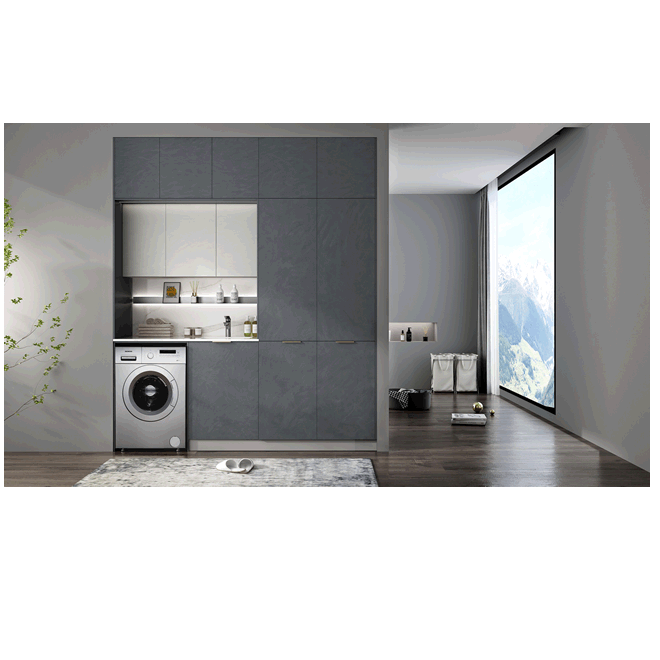This beautifully designed balcony is where style and practicality converge. The bold, stone-textured cabinetry and a stunning honeycomb-tiled wall create a modern and unique backdrop. With a clever laundry and utility setup, this space is designed to make your daily routine effortless—a functional and stylish extension of your home.