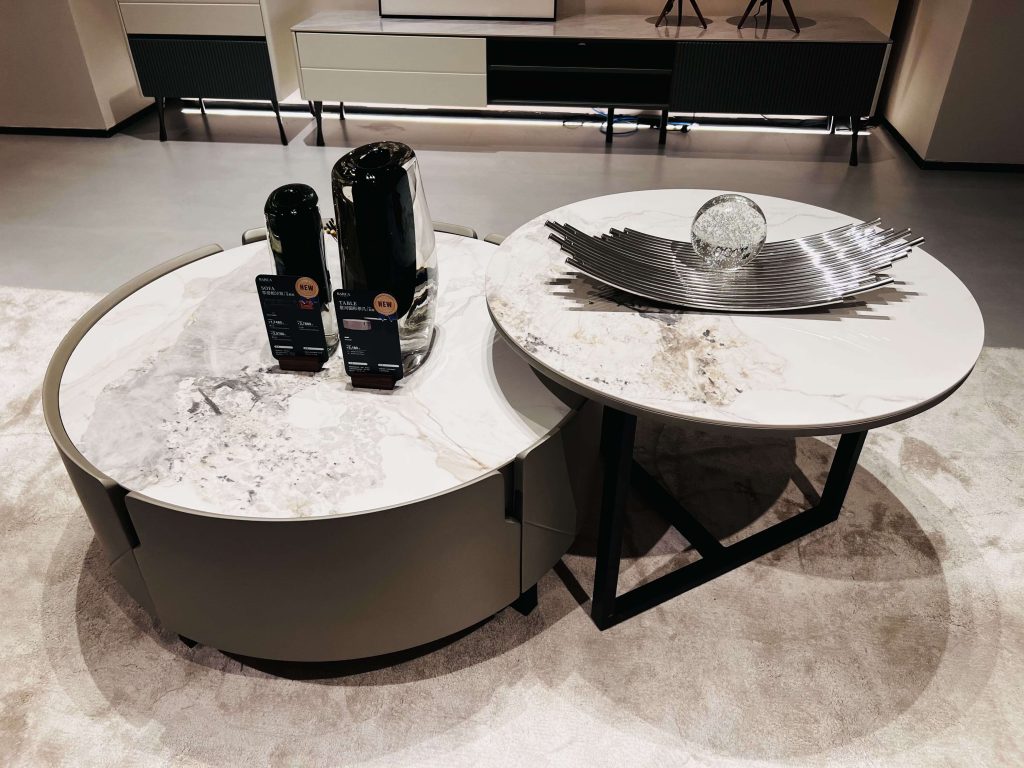 Italian light luxury style showcases lifestyle The unique texture of the glossy sintered stone is like a