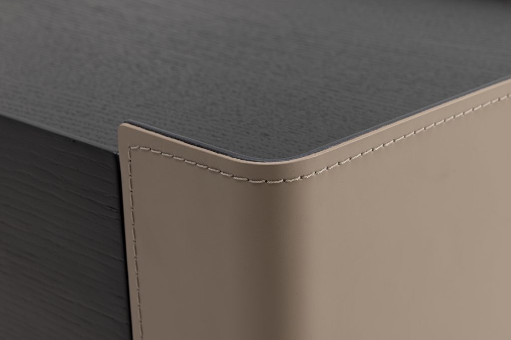 - Black water pattern saddle leather It brings a unique aesthetic appealto the bedroom space